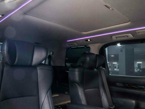 Leather upholstery, electric memory seats, steering wheel warmer, ventilated seats, dual power sliding doors, Pionner player, moonroof.