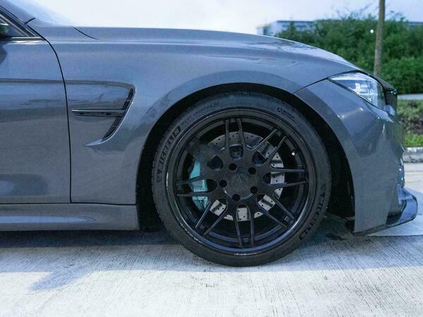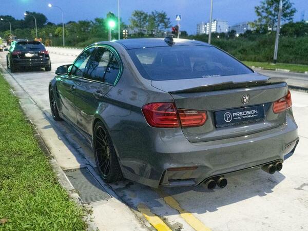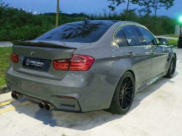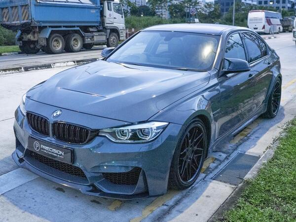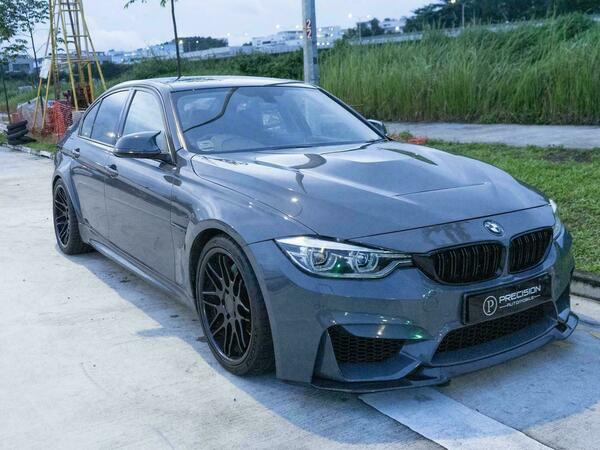 Modified M3 with a wide body kit, GTS bonnet, and full engine rebuild with receipts. Features include wossner forged internals, afe intake, VRSF FMIC, VRSF downpipe, Bastuck exhaust with cert, upgraded charged pipe, Apple CarPlay, M Performance carbon steering wheel, BCBR coilovers, brand new LED headlights, and a stage 2 custom tune for 181hp/450nm.