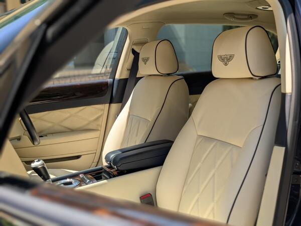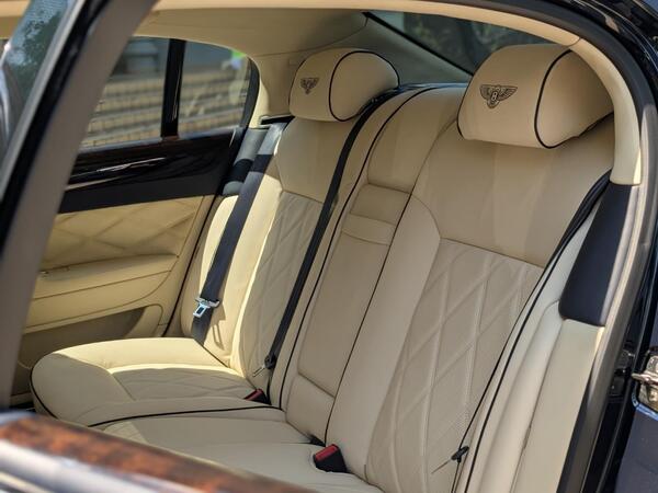 Full front and rear electric memory seats, four-zone climate control. Breitling clock, rear sunshade, adjustable suspension and height.