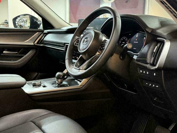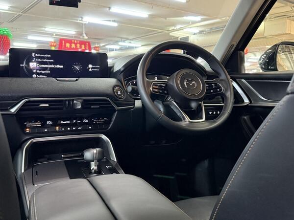 The CX-60's interior is designed with high-quality materials and advanced technology, providing a comfortable and luxurious driving experience. Standard features include a twelve-speaker premium BOSE audio system and a panoramic sunroof.