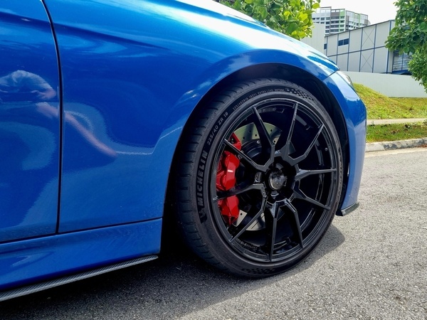 Factory M-sport body kit, MST Air intake, Carbon fiber front lip, side skirts and spoiler, Black M3 mirror covers, Brembo bbk 6 pot, 19" rims.