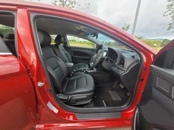 Leather seats, sports rims, built in audio system with steering controls, Bluetooth, reverse camera/sensor, auto retractable side mirrors, rear aircon